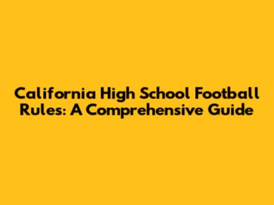 California High School Football Rules: A Comprehensive Guide