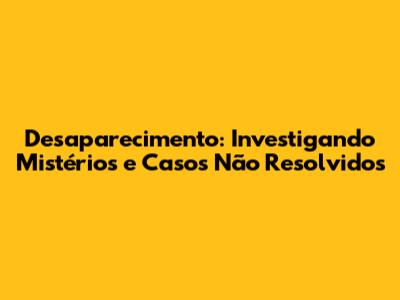 Desaparecimento: Investigando Mistérios E Casos Não Resolvidos