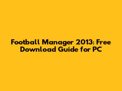 Football Manager 2013: Free Download Guide For PC