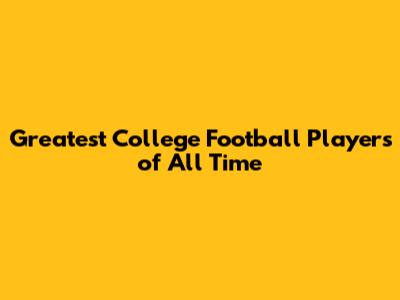 Greatest College Football Players Of All Time