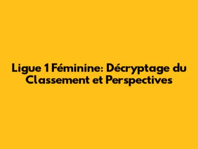 Ligue 1 Féminine: Le Classement Actuel Et Analyse Complète