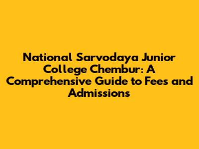 National Sarvodaya Junior College Chembur: Fees & Admission Guide