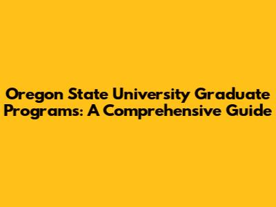 Oregon State University Graduate Programs: A Comprehensive Guide