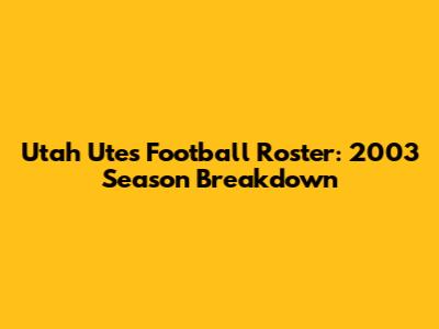 Utah Utes Football Roster: 2003 Season Breakdown